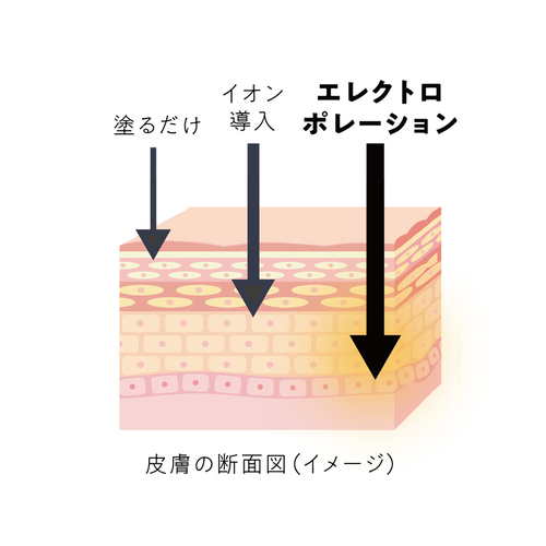 適度な強さのパルスで真皮下層まで浸透させる技術イオン導入の約20倍の効果があります!